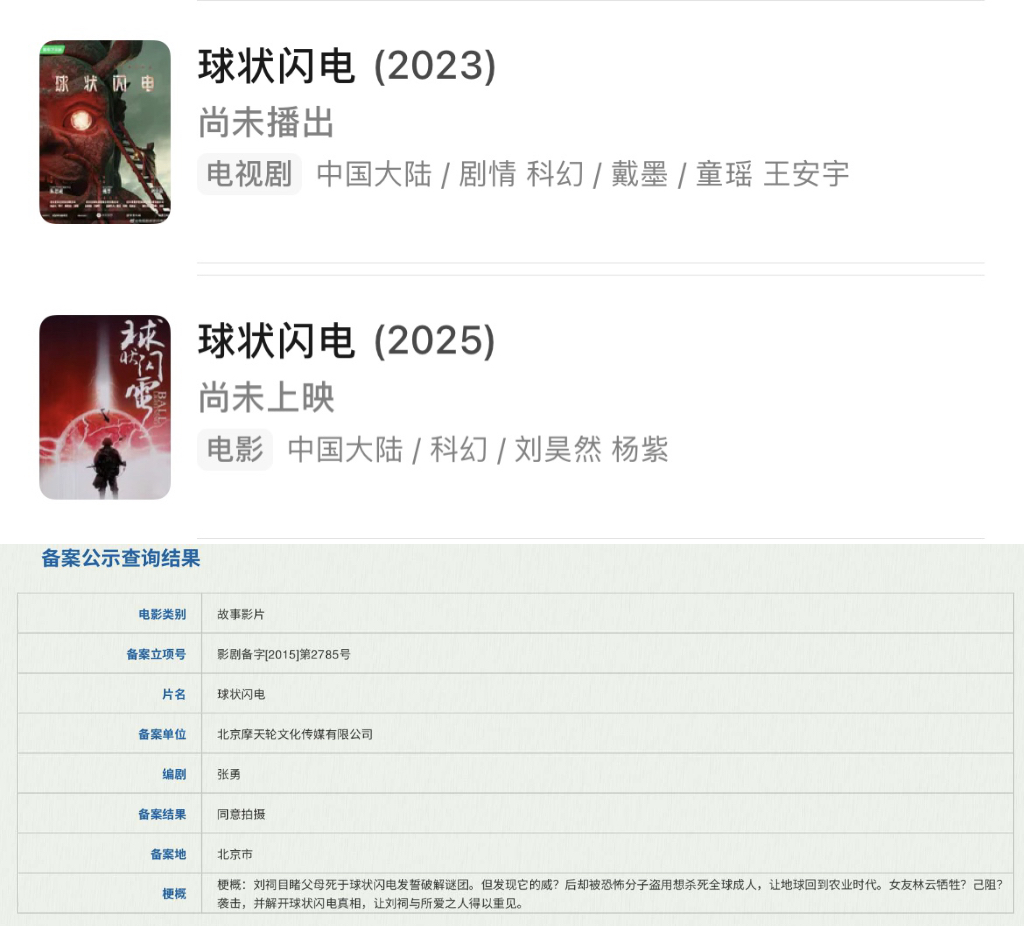 导演张小北也是早就参与到《球状闪电》的电影改编,2016年电影版《球状闪电》就已立项备案。而爱奇艺出品的剧集《球状闪电》于去年1月备案,到8月底已经杀青,预计今年播出。