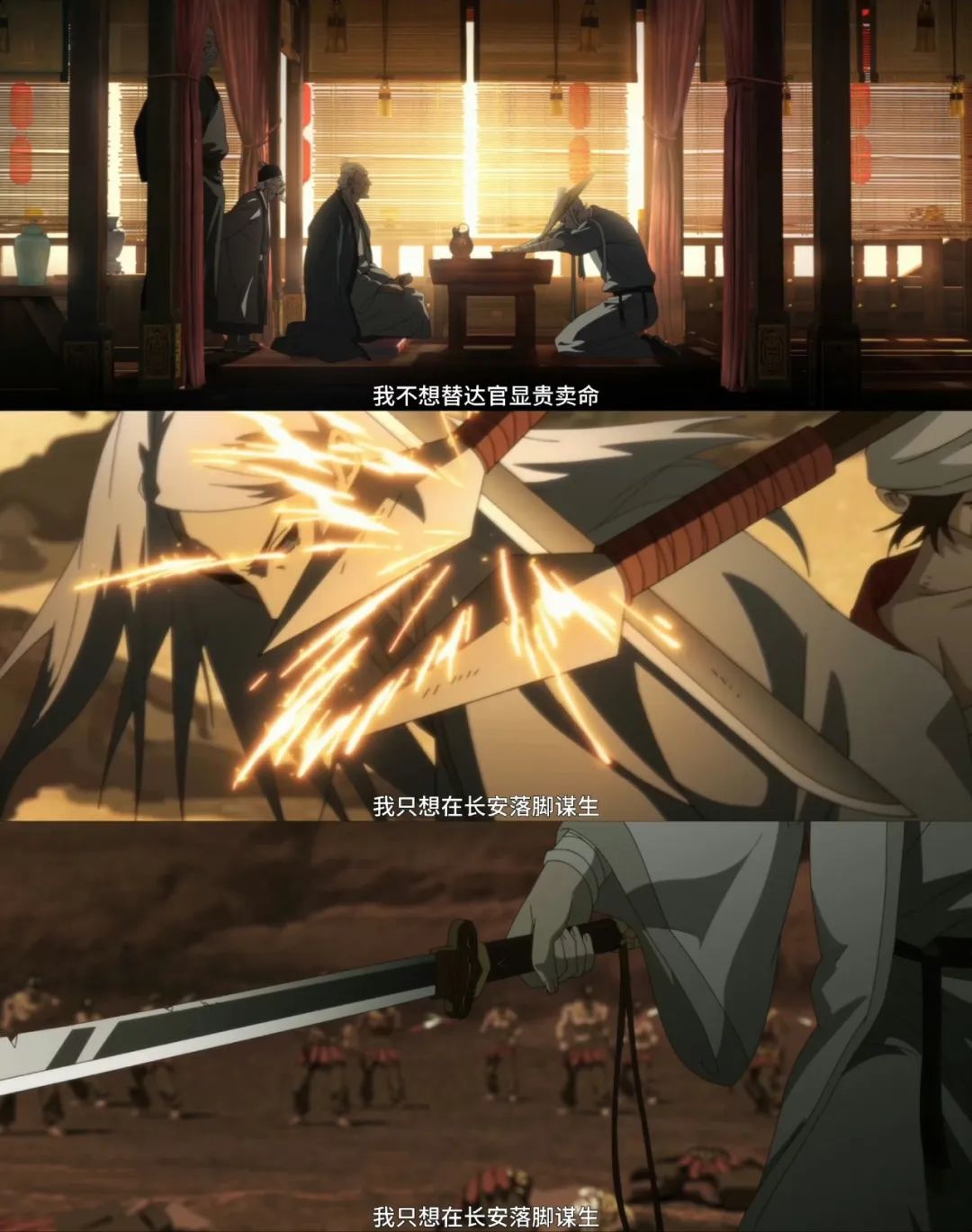 硬核武侠《枕刀歌》,在前期策划时,结合题材想好了用什么样的载体去传达对中国文化的理解和认知,再把符合中式审美视效的诉求,放入到工业化的流程当中,先用2D效果进行艺术化表达,再用3D工业流程辅助艺术化的完整表达。最终保留了打戏线条的粗粝,古代画面的写意,三渲二技术的应用,又加速了生产。