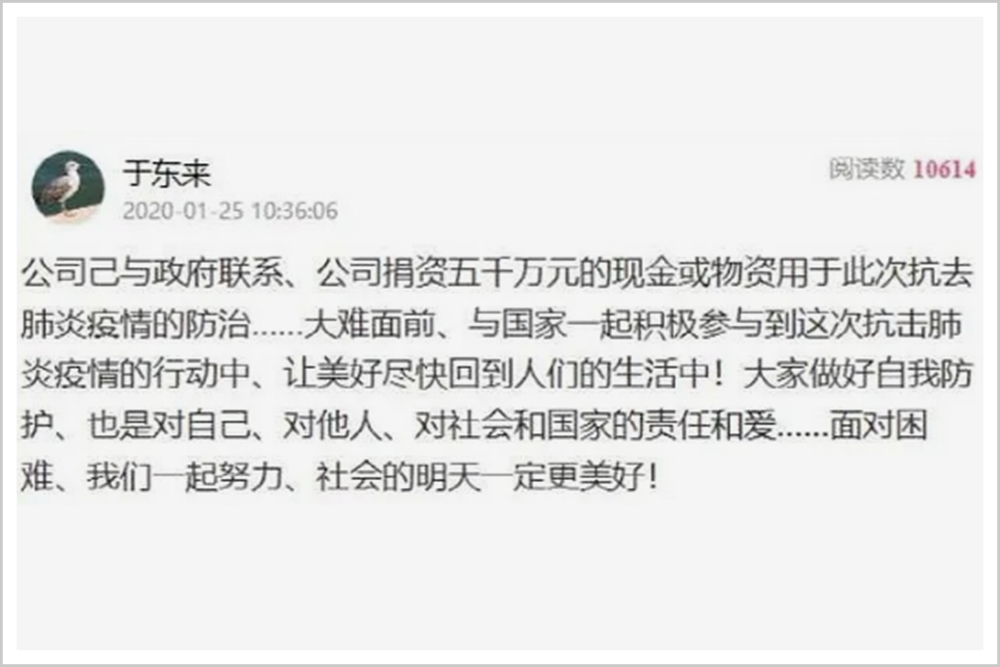 这已经不是于东来第一次在商业大会上跑题,早年间的一次商业培训中,于东来对着台下满座的老板们,持续发言了四个小时,同样一句没有提到经营。