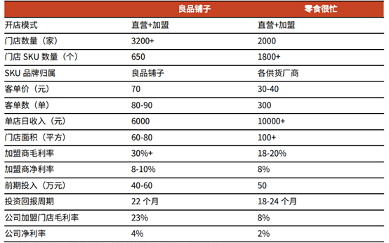 良品铺子和零食很忙的门店模型对比,图源光大证券,数据统计周期:截至2022年末