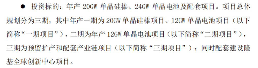 来源:隆基绿能新建项目详情、隆基绿能公告