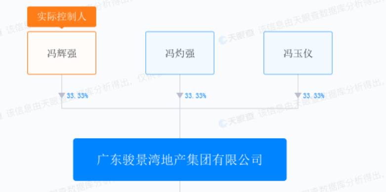 另外,广东骏景湾地产集团有限公司股东也发生了变化。于2022年12月,该公司新增冯玉仪持股33.3%,而冯家强退出了股东行列。在此之前,该公司由冯家强、冯灼强、冯辉强各持股三分之一。