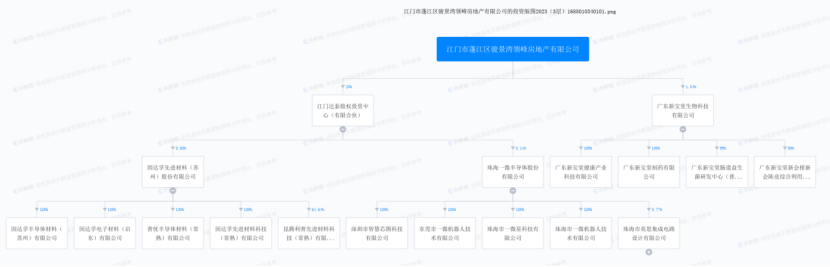 比如江门市蓬江区骏景湾领峰公司,它成立于2016年,是一家以从事房地产业为主的企业,旗下投资了江门达泰股权投资中心(有限合伙)、广东新宝堂生物科技。
