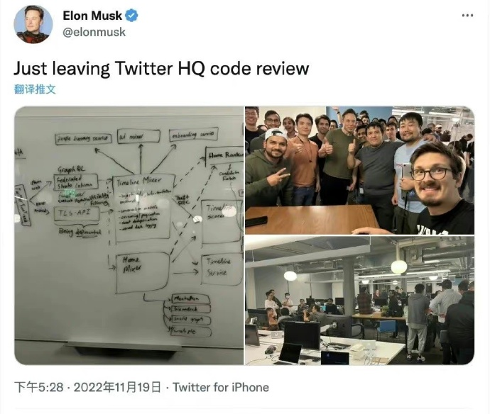 还在推特的员工,则在苦苦与新老板磨合。半夜在推特加班的照片,马斯克不止一次发到推特上。有一次,媒体还爆出一名工程师在会上被当场开除,原因是他指出马斯克推特互动数下降是因为人气下降。