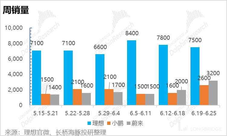之前公司的指引是:二季度交付要做到 2.1-2.2 万辆,4 月和 5 月小鹏共交付月 1.5 万辆,隐含 6 月份交付量 6.5k-7.5k。而根据理想官微披露的周度高频销量数据来看,6 月截至 25 号小鹏已完成销量 7800 辆,达成二季度预期交付量基本无碍。