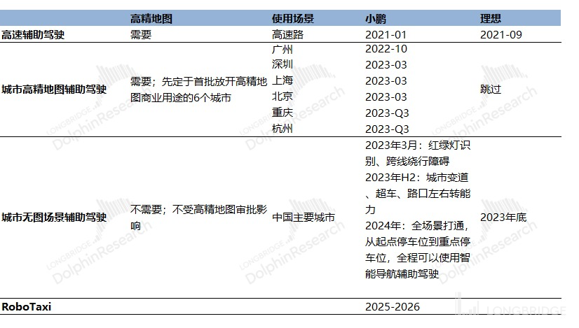 小鹏 XNGP 目前进度:23 年 4 月已实现 XNGP 第一阶段,在上海广州深圳开放城市 NGP, 预计 Q3 末陆续开放不依赖高精地图的 XNGP 功能,将 NGP 拓展至 50 城,23 年底 XNGP 大规模量产落地,24 年辐射至 200 城市,实现全场景打通。