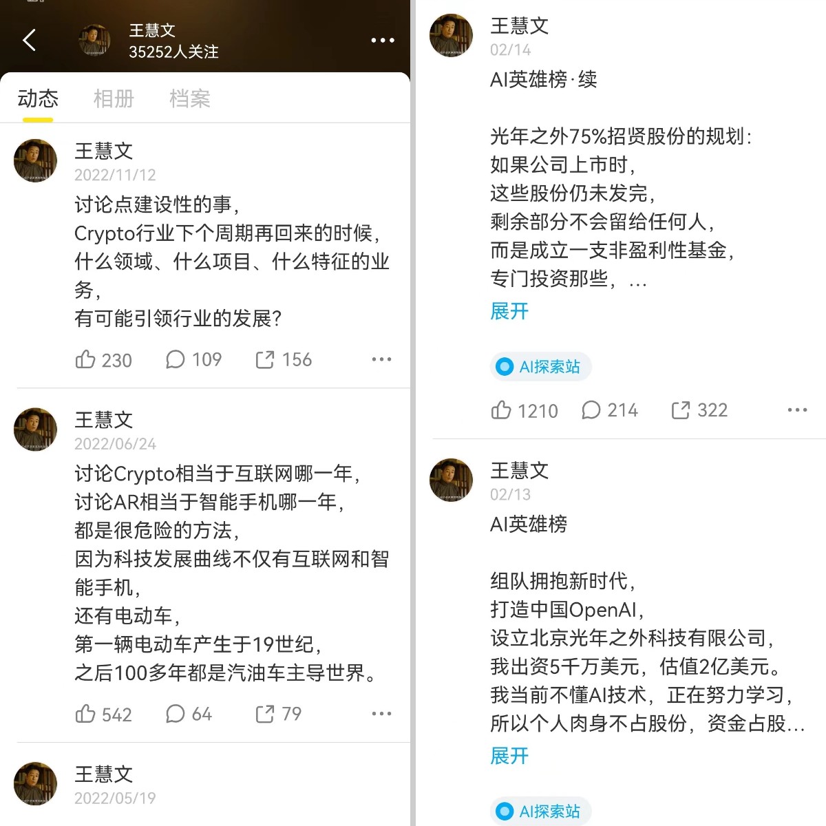 从美团退休48天后,他出任快手科技非独立执行董事。2022年11月,他的即刻账户上显示,他在关注Crypto(加密货币),比如Web3。今年,随着ChatGPT的大火,他亲自上场,创立人工智能公司光年之外。在招募人才的英雄帖中,他称要组队拥抱新时代,打造中国OpenAI。