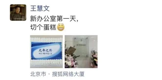 2023年4月6日,王慧文曾经更新一条朋友圈,“新办公室第一天,切个蛋糕”,定位是搜狐网络大厦——距离美团总部大厦17公里。