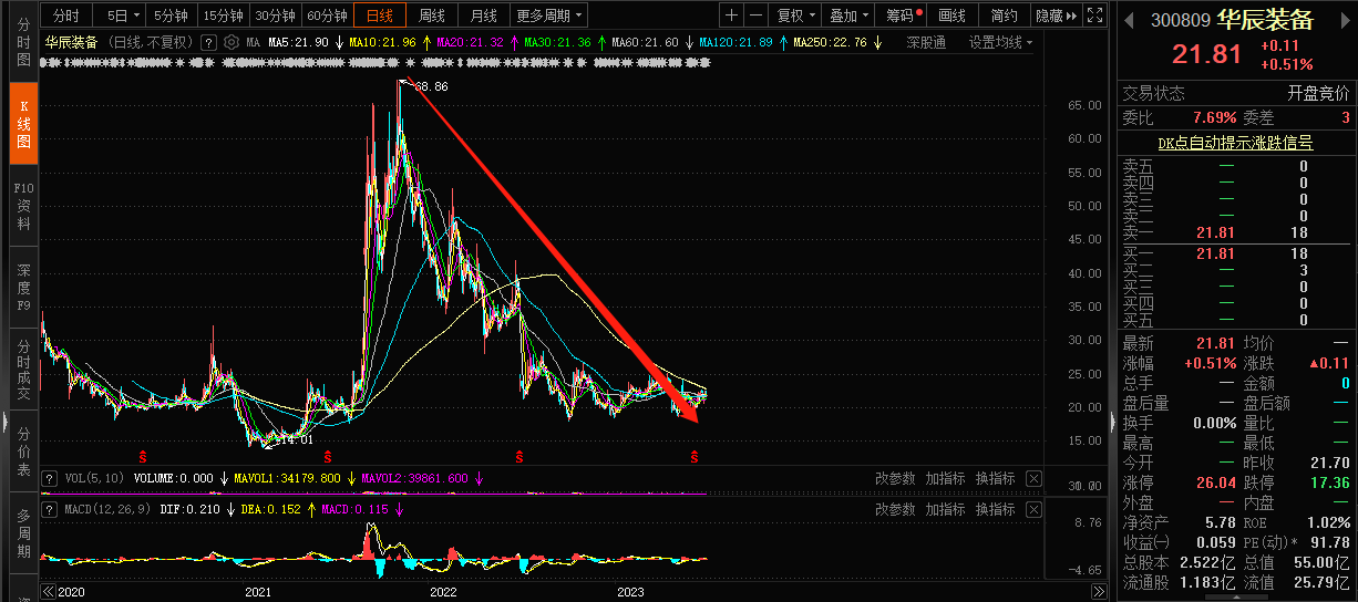 钛媒体APP注意到,成立至今,华辰装备可谓是专心做“全自动数控轧辊磨床”。在工业母机战略地位提高的核心催化下,原本一直交投寡淡的华辰装备,在2021年8月突然迎来一波大涨行情,一度成为工业母机炒作的龙头。2021年11月8日,华辰装备创下上市以来高达68.86元的高点。根据K线图,这也是转折点,自此之后华辰装备进入一段长久的震荡下行期。截至7月3日收盘,华辰装备报21.7元。