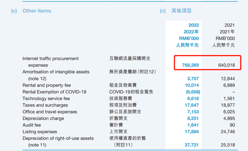 相对应的,九方财富互联网流量采购开支也逐年攀升,分别约占销售及营销开支总额的 51.8%、73.1%、74.8%和84%,近两年互联网流量采购额合计高达14亿元。