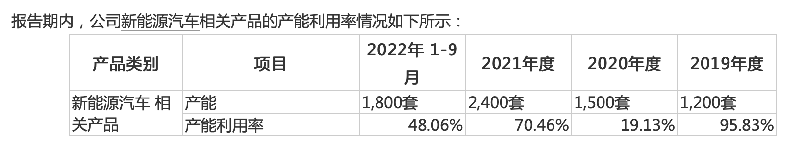 不过,公司新能源汽车相关产品产能利用率波动较大,且近三年产能利用率较低。2019年至2022年1-9月分别为95.83%、19.13%、70.46%和48.06%。公司解释称,这主要是公司氢燃料汽车产品与新能源汽车产品共用生产线,前者的生产规模影响后者的生产,并且其产能利用率也随着产品布局方向而调整。
