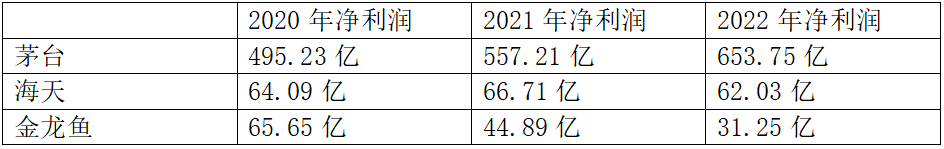 再从它们近三年的净利润对比来看,金龙鱼的净利润近年大幅走低,海天则较为平稳,而茅台却节节攀升。疫情期间国际市场动荡、原材料价格持续走高,公司利润降低的确是常态,但三家对比却唯有金龙鱼因此倍受重创。