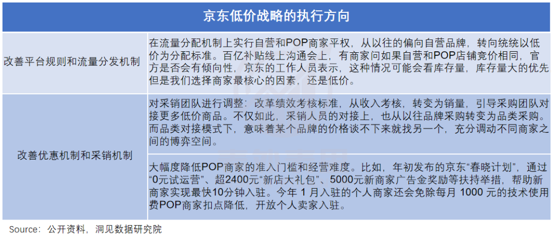 此外,京东还实行采销分离,避免内部员工用流量坑位、营销工具等与商家议价,腾挪出降价空间。