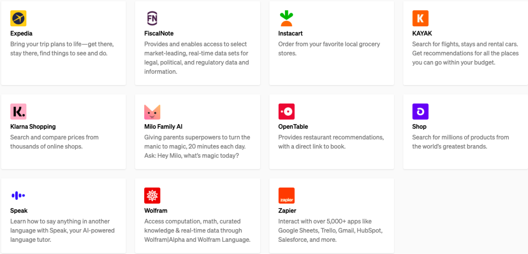 如果说API是让第三方应用接入ChatGPT的能力,而插件就是让ChatGPT接入第三方应用的能力。用户可以在ChatGPT中,直接通过插件与第三方应用进行交互,比如实现快速预定或购买产品。