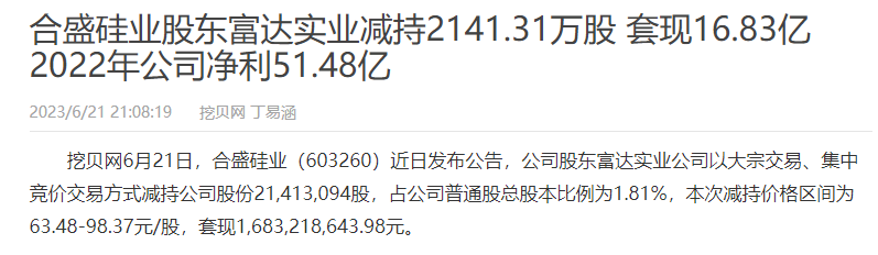 实际上,尽管合盛硅业这两年股价大跌了很多,但依然有主要股东进行大笔减持,并套现16.83亿离场。
