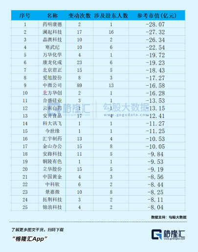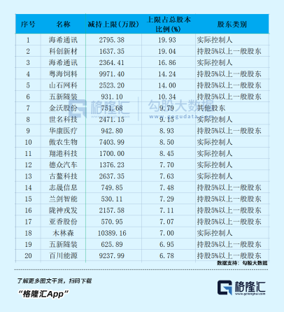 比如,成都先导,公司多名股东拟合计减持公司不超18.95%的股份;粤海饲料大股东Fortune Magic计划减持公司不超14.24%的股份;澜起科技,上半年累计十多次减持,涉及股东16人。
