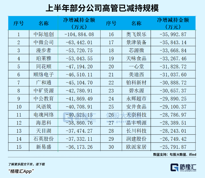 据ifind软件不完全统计,在已公开的减持交易数据中,上半年仅仅上市创始人及高管团队的实际已减持套现规模就超过200亿元,其中还有相当部分没有被统计进去,也还有很大部分的减持操作还在进行中。