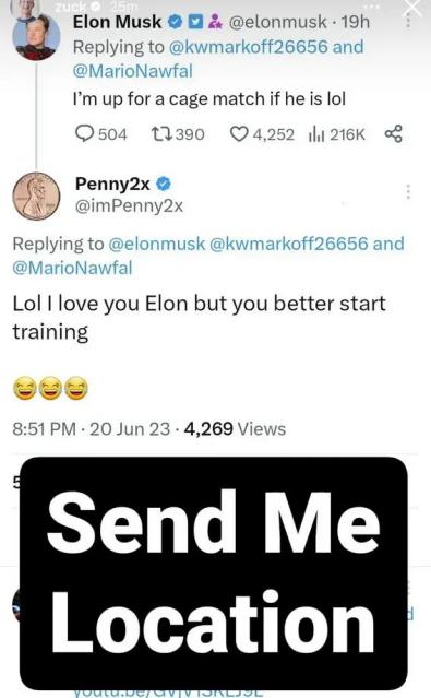这件事本来也是由Threads引发的。有网友发布了Meta正在计划上线推特竞品Threads的消息,马斯克跑去阴阳怪气,说“我敢肯定地球已经等不及完全被扎克控制了”。另一位网友提醒他小心点,小扎是有点柔术在身上的,马斯克表示笼中格斗可以啊,咱奉陪。