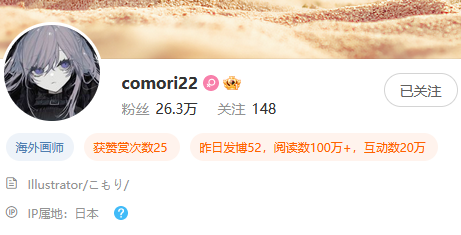 甚至有人付诸实践。这几天,数位日本的艺术创作者来到了微博,就是因为新的限流政策可能会影响他们的作品传播。这些创作者收到了微博用户的热烈欢迎,一位名叫comori的二次元插画师短短几天就已经积累了26万粉丝(昨天上午还是17万粉丝),而她在推特的粉丝量是4万。