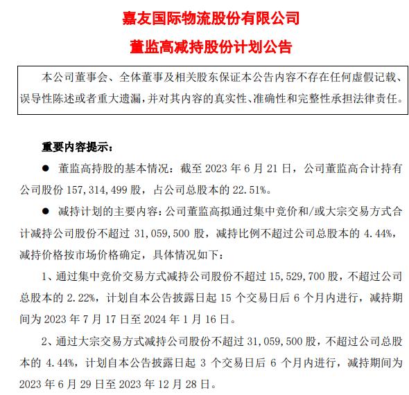 4月16日,嘉友国际发布2022年度分红预案,预计派现2.5亿元,6月21日为股权除息登记日。6月25日晚间,该公司的董监高就发布减持计划。刚分红就大手笔减持,不少投资者认为,此次董监高减持吃相难看。