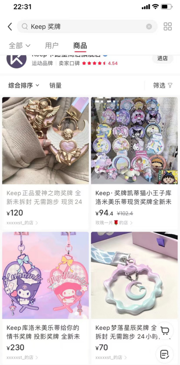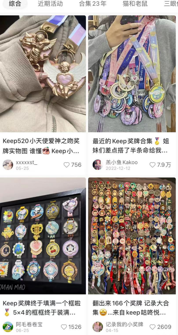 蓝媒汇曾统计过,奖牌业务为Keep带来的巨大流量:小红书笔记5万余篇,部分点赞量10万+;抖音#Keep奖牌#、#Keep奖牌开箱#话题23.8亿、1094.9万次播放量,更夸张的是,还催生了代跑业务和二手奖牌交易。