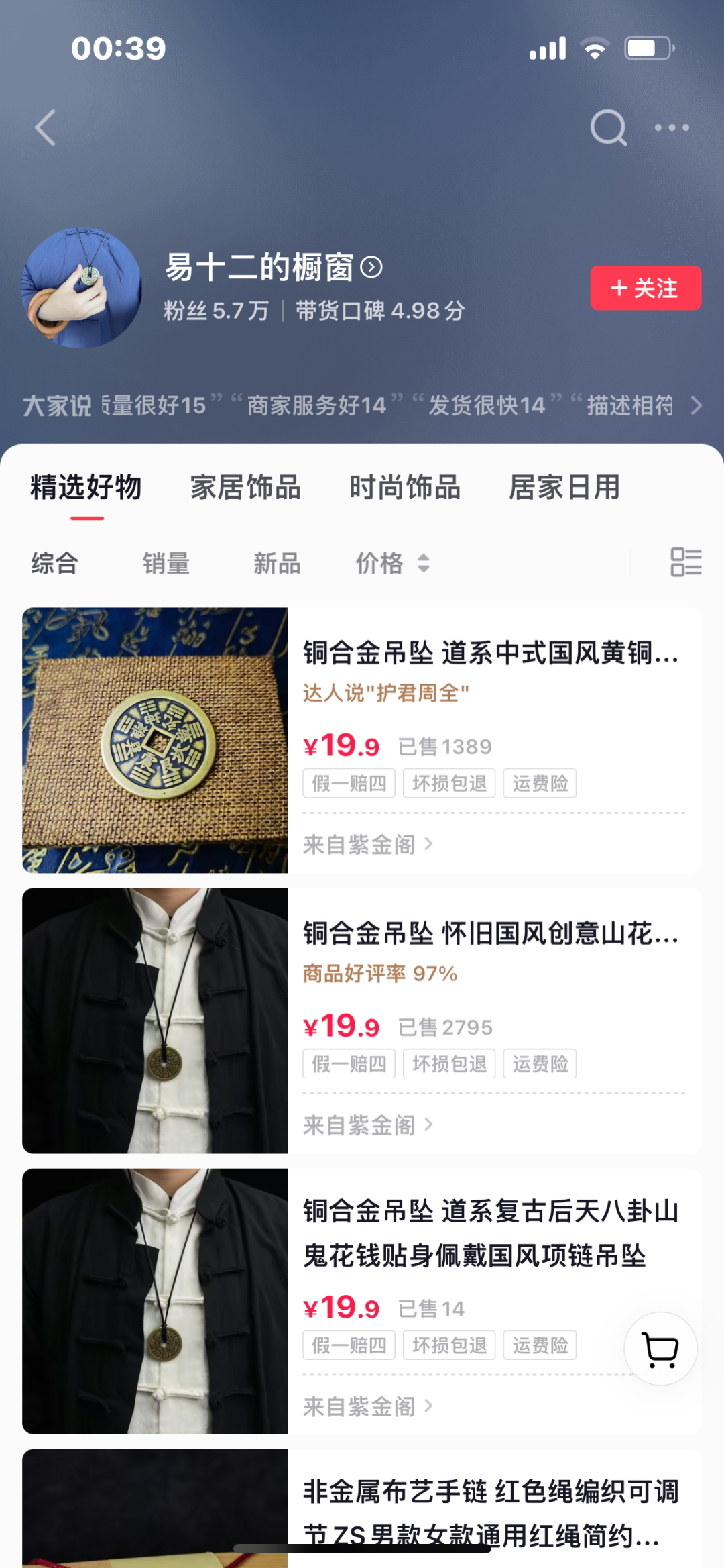 带货,也是目前各类平台上非常流行的变现方式。带货的品类通常包括道家文化用品,比如五帝钱、各类符咒、手串、风水用品等;相关产品,书籍、课程等也都有。以提升运势、改善磁场、调整风水、周易学习等为名,将这些商品挂车交易。这类带货和其它带货不同,它不是直接描述某某商品有多好,接着通过使用场景描述诱导购买。而是通过带标签的#开运妙招#提升桃花运#零基础玄学入门为噱头等进行营销,以“一定不能是封建迷信那种,但又带点神秘色彩”的大师人设,赌上“中国人骨子里还是会信起名、风水之类的”的基因自信,完成付费转化。