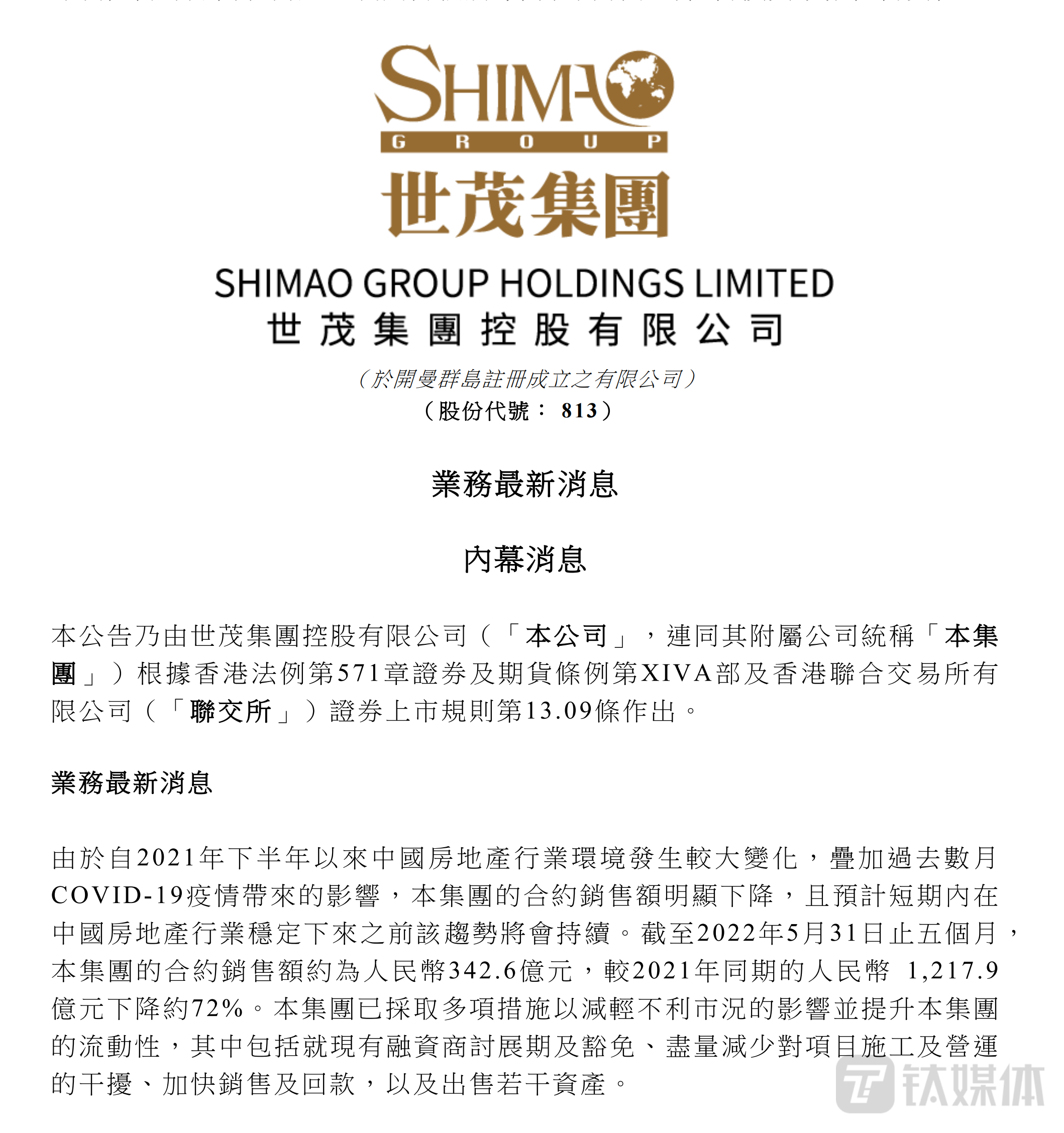 今年5月30日,世茂旗下A股上市主体ST世茂(600823.HK)发布公告指出,公司关于“20沪世茂MTN001”、“21沪世茂MTN001”以及“21沪世茂MTN002”未按期足额支付利息的公告,自曝债务违约。公告称,2022年至今,ST世茂通过拓宽销售渠道、精准定位客群等方式,多措并举促销售,但销售情况仍大幅度下滑。