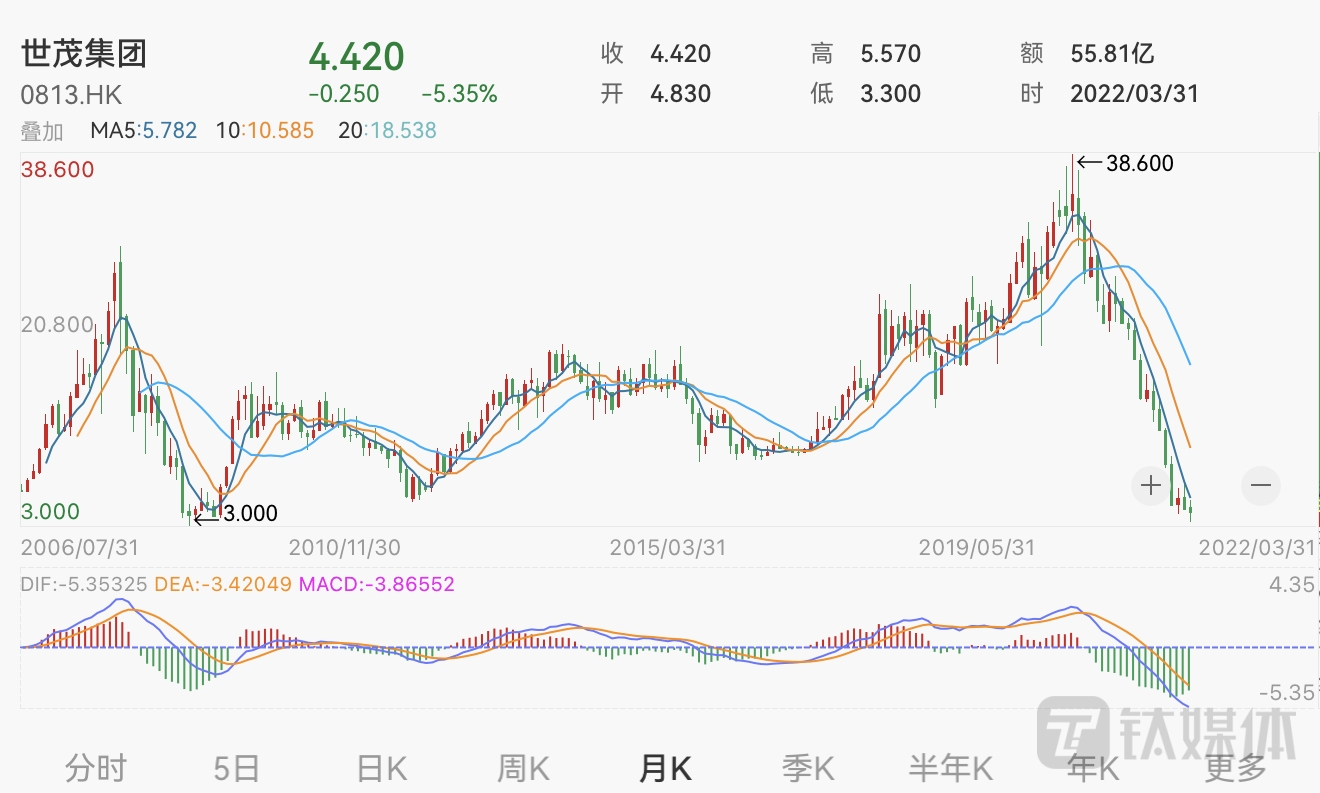 重点项目被拍卖、遭流拍,这让早已“千疮百孔”的世茂更加面上无光。二级市场方面,公司股价仍停留在2022年3月31日的收盘价4.42港元,当时世茂因无法按时披露上一年度业绩报告而被联交所停牌,如今世茂已欠下三份业绩报告未披露。