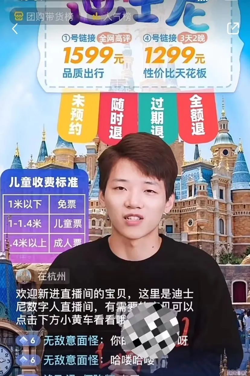 不过,分析达人直播间的产品可以看出,数字人主播更多卖的都是迪士尼门票、海外旅行这类金额高的标品。2D数字人直播带货在本地生活赛道很容易实现大额成绩。