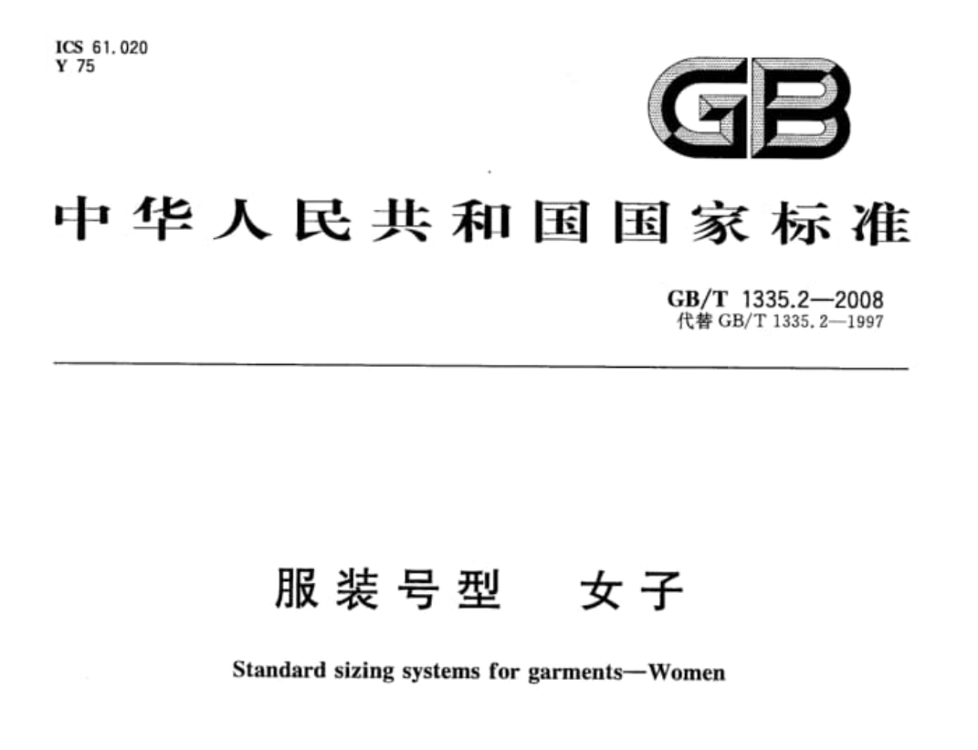 2009年,GB1335-1997服装标准废止,国家质量监督检验检疫总局、中国国家标准化管理委员会发布的了全国统一的《GB/T 1335.1-2008 服装号型男子》、《GB/T 1335.2-2008 服装号型女子》国家标准、《GB/T 1335.3-2008 服装号型儿童》国家标准。也是目前现行服装号型标准。