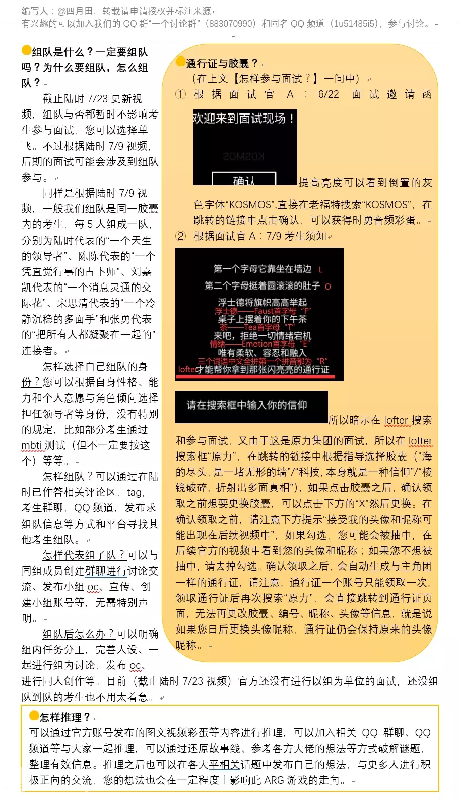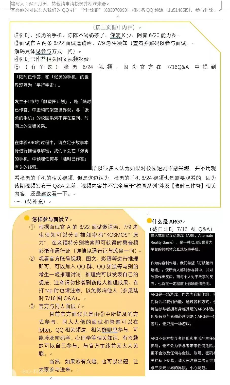 某一日的推理结后,“考生”们在群里发出了“敬。真相与自由!!!!!”负责整理的用户“粥迟”总结:群体力量是人类文明的赞歌。再附上消息:拥有物理、化学、计算机等专业知识的且有意愿加入攻略组的老师们请尽快私聊本账号。