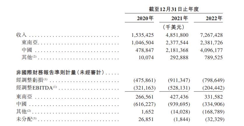 招股书显示,2020-2022年,极兔速递在东南亚地区的收入分别为10.46亿美元、23.78亿美元、23.82亿美元;在中国的收入分别为4.79亿美元、21.81亿美元、40.96亿美元,