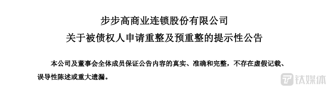 另外,在7月8日,步步高发布公告称,收到湘潭市中级人民法院送达的《通知书》,债权人龙牌食品以步步高不能清偿到期债务且明显缺乏清偿能力为由,向湘潭中院申请对步步高进行重整。