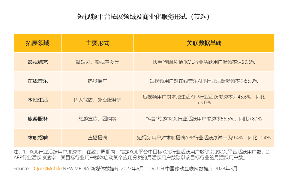 7、商业化拓展:拥有流量基础及多元视频内容生态的短视频平台积极向多领域拓展,对多种商业服务场景进行信息展示及传播形式的升级,以实现平台多维商业发展