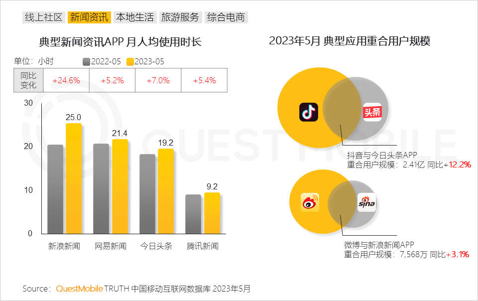 QuestMobile2023年5月数据显示,全网用户规模超12亿,平均每天使用时长达7.1小时,较2019年同期提升了1.3小时。