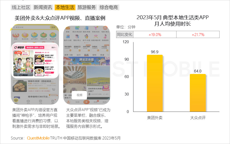 4、本地生活类应用通过视频、直播等形式,加强服务内容展示及与用户互动,用户粘性提升明显