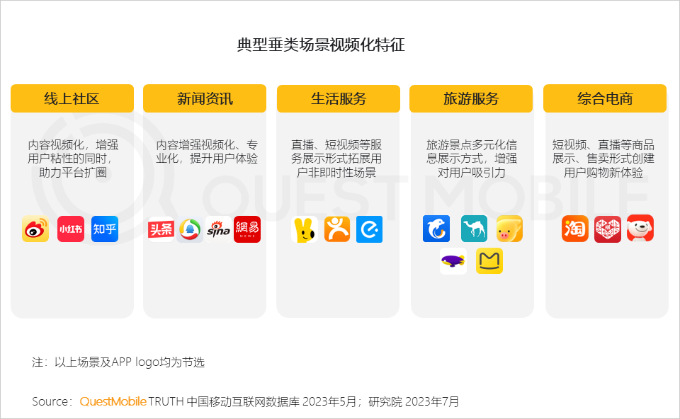 这种背景下,线上社区如微博、小红书、知乎,本地生活服务类如美团外卖、大众点评、饿了么,电商类如淘宝、京东,以及新闻资讯、旅游服务等等赛道玩家都在发力视频化内容……