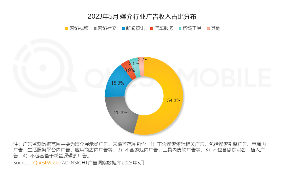 5、商业化—广告:视频平台流量及用户粘性优势在广告变现中得以充分显现,广告投放媒介中,网络视频行业占比突出