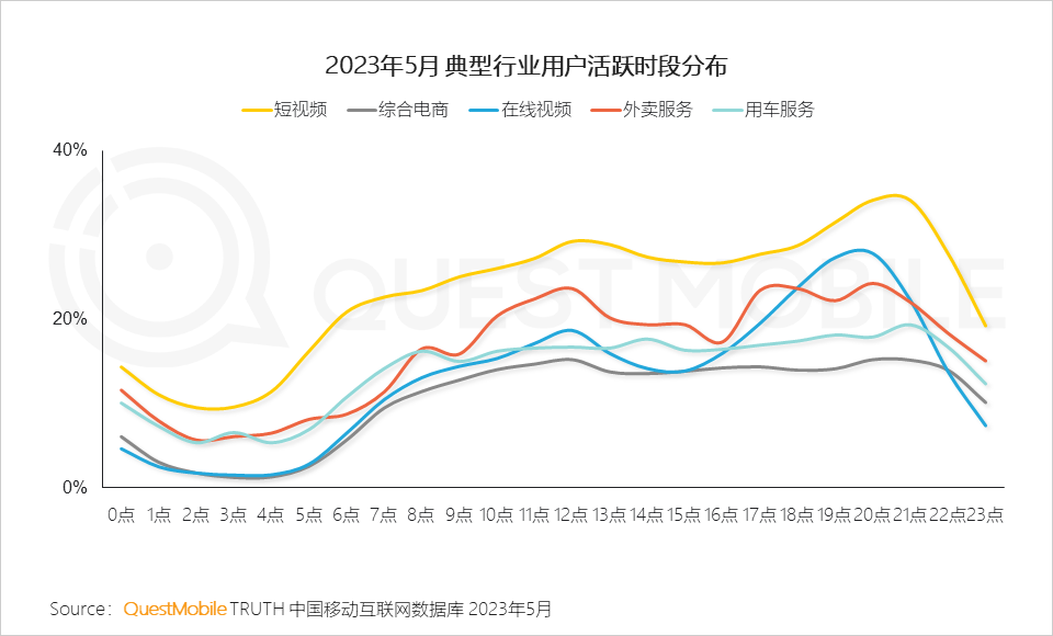 4、晚间20-22点为多场景活跃高峰,用户对视频类内容向全时段发展