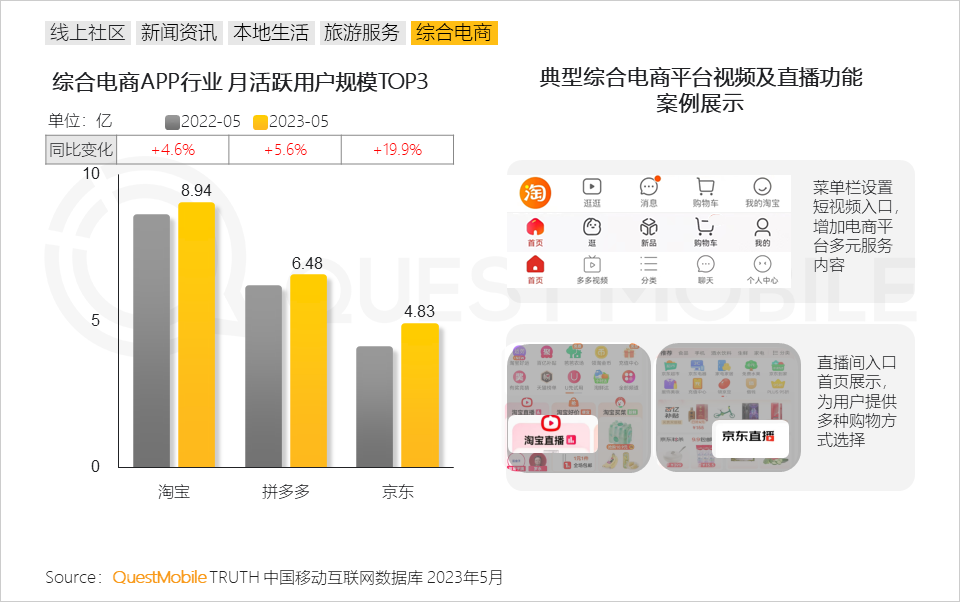 8、综合电商平台作为用户线上购物的主流渠道,对商品展示、需求匹配等平台功能不断优化迭代,增加视频内容、直播卖货等服务形式丰富用户购物体验
