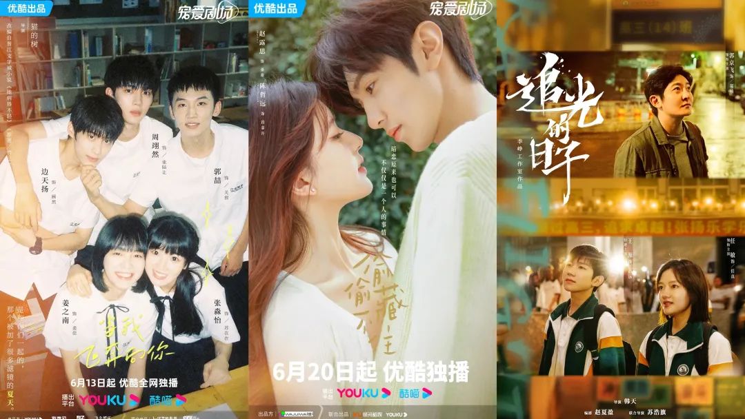 优酷一连发布了三部青春剧,《偷偷藏不住》《当我飞奔向你》和《追光的日子》。三部青春剧各有各的风格和侧重,《偷偷藏不住》把“暗恋”的情愫放大来写,《当我飞奔向你》强化的是彼此鼓励、共同成长的主题,教育部教师工作司指导的《追光的日子》,着重描绘的是老师与学生的关系。