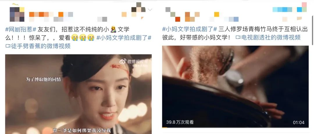 今年3月,“招惹 小妈文学”的片段走红微博,简单的预告片就透露了剧情里多种流行元素:复仇、小妈背德文学、青梅竹马、破镜重圆等。这部民国爱情悬疑微短剧《招惹》,上线两周分账 800 万,突破腾讯视频微短剧双周分账纪录,截至 5 月累计分账已破 1500 万,创造了腾讯视频微短剧热度纪录。这也是云合数据的统计里,唯一一部播放量破亿的微短剧。