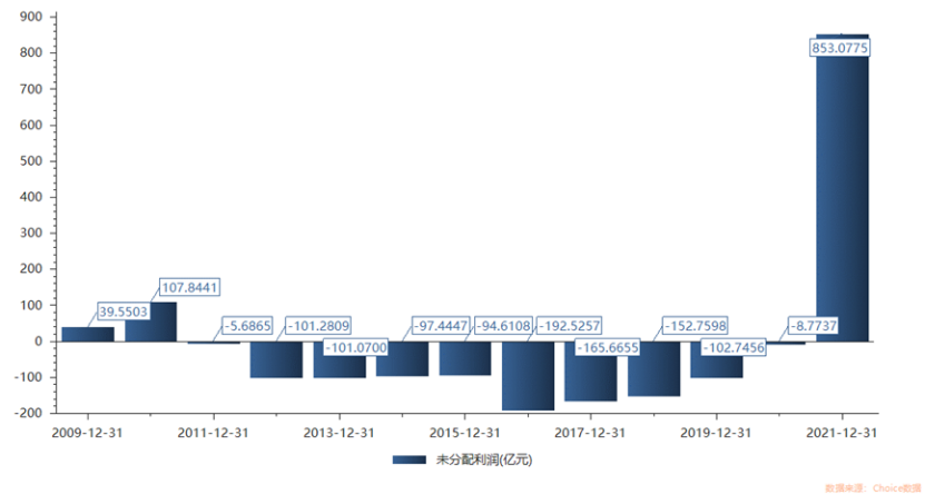 上一轮周期里,中远海控长达10年未分配利润为负数