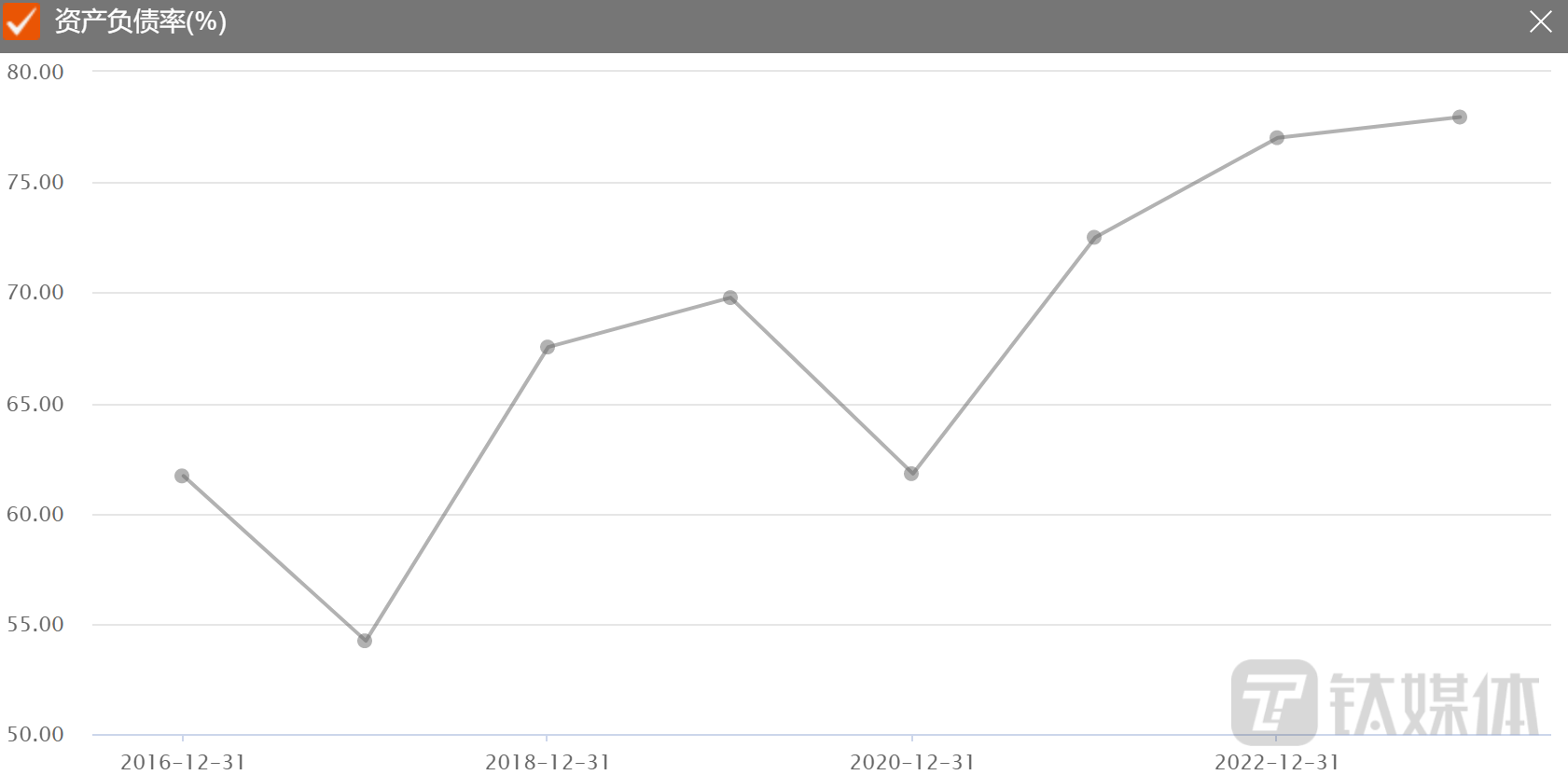 截至2023年3月31日,公司货币资金为9.57亿元,而短期借款余额为8.94亿元,应付票据及应付账款则高达26.19亿元,从数据来看,公司偿债压力可能较大。与此同时,公司资产负债率也逐年攀升,并且明显高于同行业平均水平。2019年—2022年,公司资产负债率分别为69.77%、61.79%、72.50%和77.95%,而同行业(C35制造业-专用设备制造业)平均资产负债率39.77%、39.10%、39.53%和39.26%。可能是为应对紧张的资金面,2022年11月公司发布定增公告,拟定增20亿元用于公司资金需求。