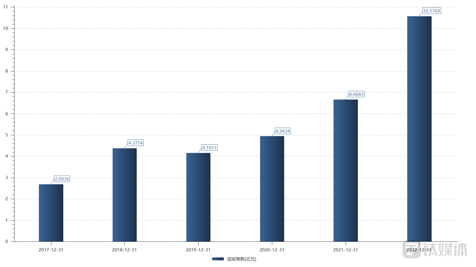 最后,公司应收账款也在不断增加。2022年年报显示,公司应收账款账面余额约为10.57亿元,较期初增长28.4%。2022年公司对账龄为1年以上应收账款已计提坏账准备为1.09亿元,如账龄为1年以上的应收账款无法回收,将可能对公司的经营业绩、经营性现金流等产生不利影响。