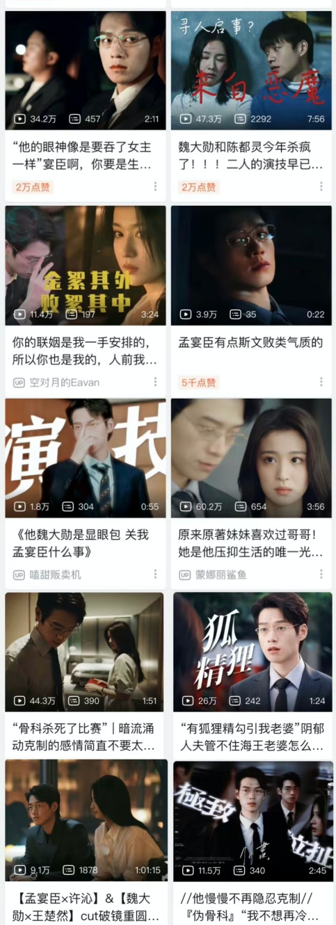 本着“剧追都追了,总要嗑点啥”的心态,这对伪骨科CP迅速攻占了观众的心房。“孟晏臣”则一举成了今年最红的男配角,二创视频、角色解读、角色粉一拥而上,“男配角上位”的势头一发不可收拾。
