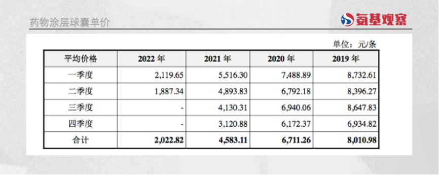 2019年,公司洗脱球囊单价达到8732元/条,2022年二季度下降至1887元/条,降幅近80%。