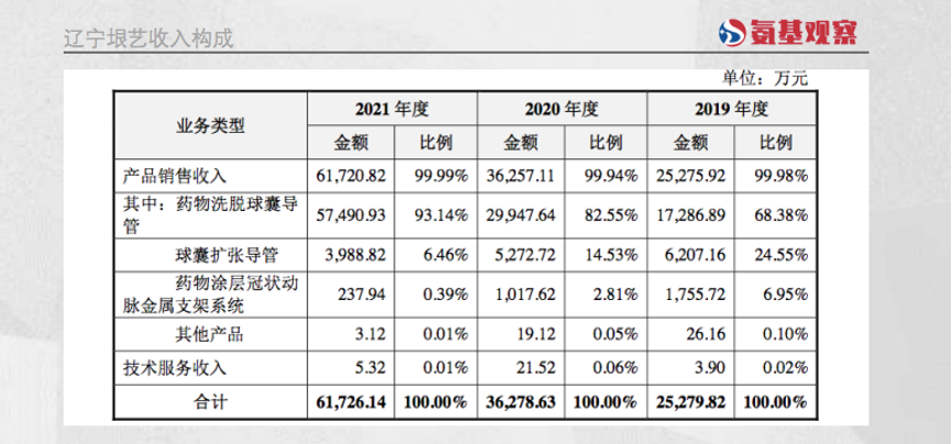 既有先发优势,又有适应症优势,辽宁垠艺很快朝着梦想进发。如上文所说,公司收入规模大幅增长,核心推手正是球囊。2021年,公司球囊收入5.7亿元,占公司总收入比重高达93%。