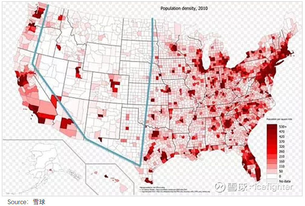 而美国分散的地理分布——如雪球博主icefighter提到过,美国“U型线外”50%的土地分布了86%的人口,使得航空货运成为刚需。