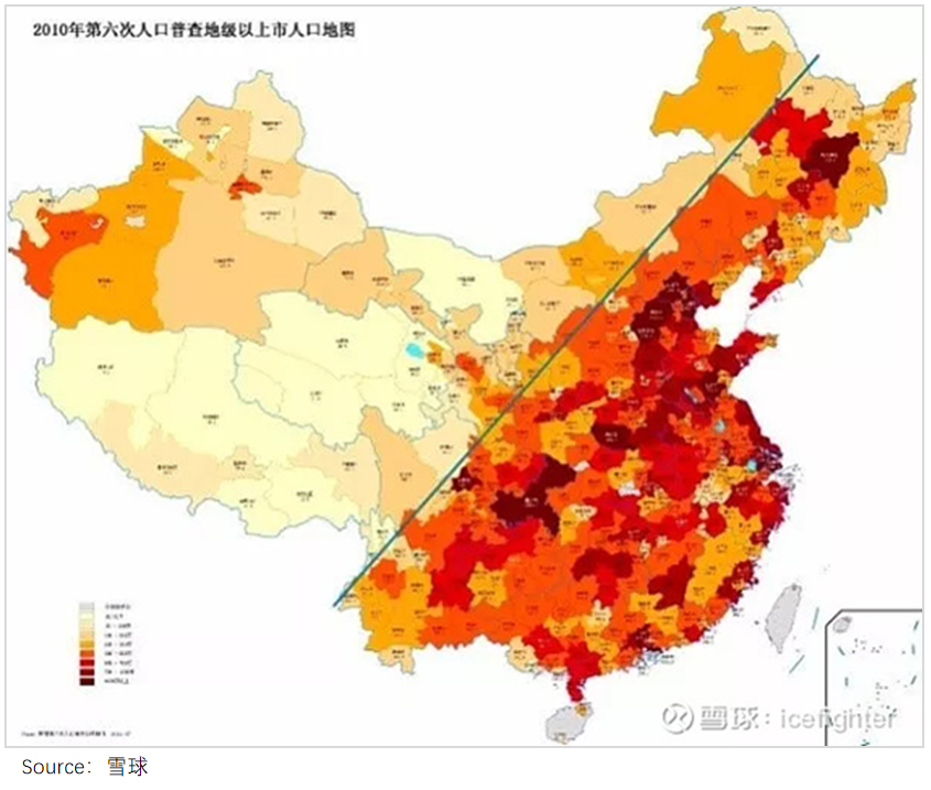 可以看到,我国的人口分布相对集中,“胡焕庸线”线东南半壁36%的土地供养了全国96%的人口。这导致72%的快递,其实可在72小时内完成投递。